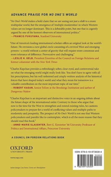 In No One's World, Charles A. Kupchan boldly challenges this view, arguing that the world is headed for political and ideological diversity; emerging powers will neither defer to the West's lead nor converge toward the Western way. The ascent of the West was the product of social and economic conditions unique to Europe and the United States. As other regions now rise, they are following their own paths to modernity and embracing their own conceptions of domestic and