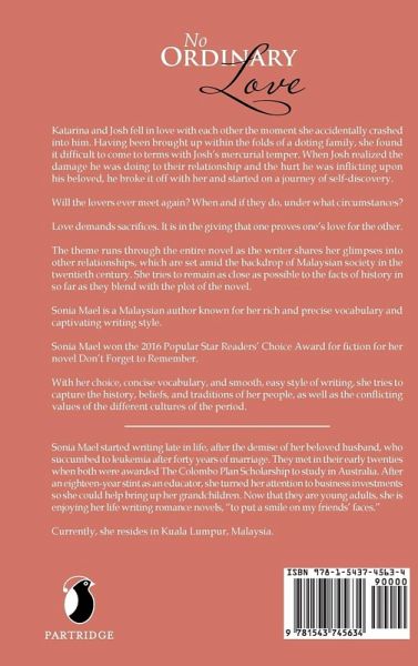 Katarina and Josh fell in love with each other the moment she accidentally crashed into him. Having been brought up within the folds of a doting family, she found it difficult to come to terms with Joshs mercurial temper. When Josh realized the damage he was doing to their relationship and the hurt he was inflicting upon his beloved, he broke it off with her and started on a journey of self-discovery. Will the lovers ever meet again? When and if they do, under what circumstances? Love demands sacrifices. It is in the giving that one proves ones love for the other. The theme runs through the entire novel as the writer shares her glimpses into other relationships, which are set amid the backdrop of Malaysian society in the twentieth century. She tries to remain as close as possible to the facts of history in so far as they blend with the plot of the novel. Sonia Mael is a Malaysian author known for her rich and precise vocabulary and captivating writing style. Sonia Mael won the 2016 Popular Star Readers Choice Award for fiction for her novel Dont Forget to Remember. With her choice, concise vocabulary, and smooth, easy style of writing, she tries to capture the history, beliefs, and traditions of her people, as well as the conflicting values of the different cultures of the period.