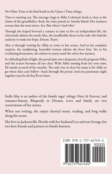 No Other Time is the final book in the Upon a Time trilogy. Time is running out. The message rings in Abby Coleman's head as clear as the chime of the grandfather clock, her time portal on Amelia Island. Her instincts scream that she must move. Act. But where? And why? Through she leaped forward a century in time to live an independent life, she reluctantly admits she needs Alex, the insufferable thorn in her side who had the audacity to make her hope. Dream. Yearn. Alex is through waiting for Abby to come to her senses. And to his complete surprise, the maddening, beautiful woman admits she loves him. Yet to his everlasting frustration, she refuses to marry until she solves her mystery. In a blinding flash of light, the portal spits out a desperate, heavily pregnant Nika, and the reason becomes all too clear. With Abby missing from her own time, Eli stands accused of her murder. The only way to clear his name is for Abby to go where Alex can't follow—back through the portal. And one passionate night together may be all they'll ever have.