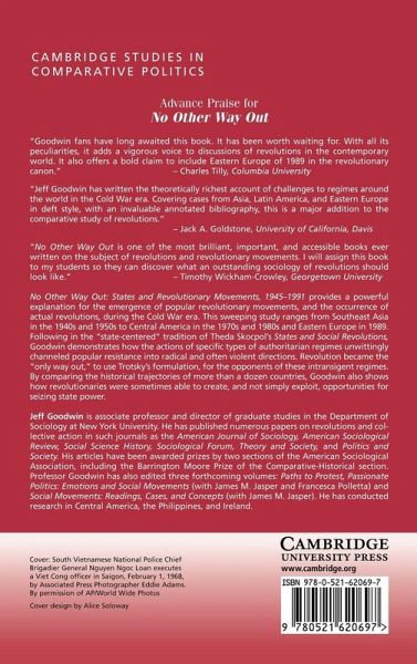 No Other Way Out provides a powerful explanation for the emergence of popular revolutionary movements, and the occurrence of actual revolutions, during the Cold War era. This sweeping study ranges from Southeast Asia in the 1940s and 1950s to Central America in the 1970s and 1980s and Eastern Europe in 1989. Following in the 'state-centered' tradition of Theda Skocpol's States and Social Revolutions and Jack Goldstone's Revolutions and Rebellion in the Early Modern World, Goodwin demonstrates how the actions of specific types of authoritarian regimes unwittingly channeled popular resistance into radical and often violent directions. Revolution became the 'only way out', to use Trotsky's formulation, for the opponents of these intransigent regimes. By comparing the historical trajectories of more than a dozen countries, Goodwin also shows how revolutionaries were sometimes able to create, and not simply exploit, opportunities for seizing state power.
