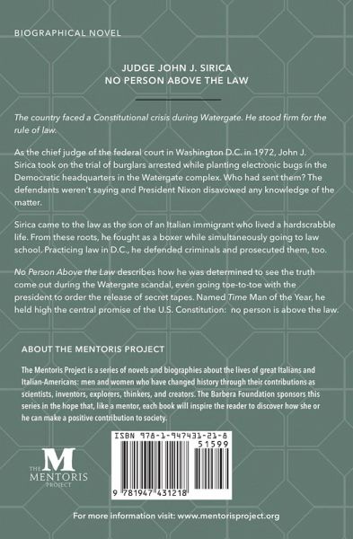 The country faced a Constitutional crisis during Watergate. He stood firm for the rule of law. As the chief judge of the federal court in Washington D.C. in 1972, John J. Sirica took on the trial of burglars arrested while planting electronic bugs in the Democratic headquarters in the Watergate complex. Who had sent them? The defendants weren’t saying and President Nixon disavowed any knowledge of the matter. Sirica came to the law as the son of an Italian immigrant who lived a hardscrabble life. From these roots, he fought as a boxer while simultaneously going to law school. Practicing law in D.C., he defended criminals and prosecuted them, too. No Person Above the Law describes how he was determined to see the truth come out during the Watergate scandal, even going toe-to-toe with the president to order the release of secret tapes. Named Time Man of the Year, he held high the central promise of the U.S. Constitution: no person is above the law.