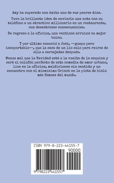 Amy ha superado con éxito uno de sus peores días. Tuvo la brillante idea de enviarle una nota con su teléfono a un atractivo millonario en un restaurante, con desastrosas consecuencias. De regreso a la oficina, una ventisca arruinó su mejor bolso. Y por último conoció a Josh, -guapo pero insoportable-, que la saca de un lío solo para reírse de ella a carcajadas después. Menos mal que la Navidad está a la vuelta de la esquina y será el colofón perfecto de esta comedia de amor urbano, líos en la oficina, maldiciones sin sentido y un encuentro con el mismísimo Grinch en la pista de hielo más famosa del mundo.