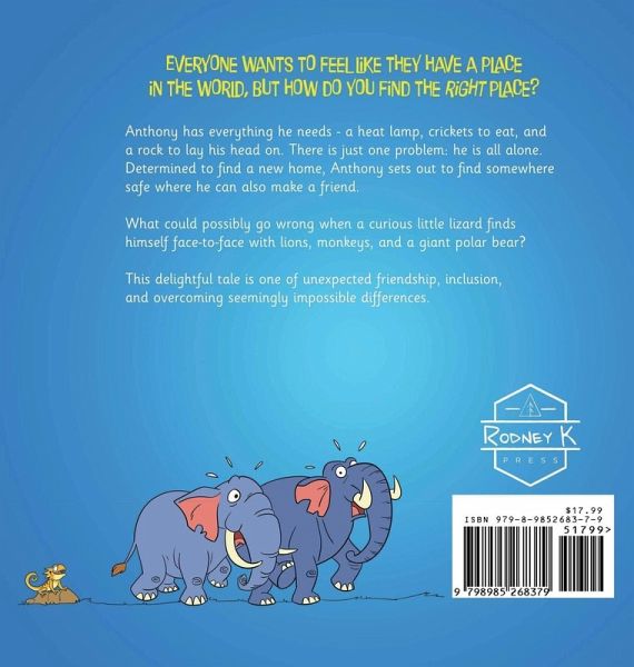 Recipient of the Mom's Choice Gold Award for family-friendly media and 2023 Bronze Medalist from Readers' Favorite for the children's fable genre! Everyone wants to feel like they have a place in the world, but how do you find the right place? Anthony has everything he needs - a heat lamp, crickets to eat, and a rock to lay his head on. There is just one problem: he is all alone. Determined to find a new home, Anthony sets out to find somewhere safe where he can also make a friend. What could possibly go wrong when a curious little lizard finds himself face-to-face with lions, monkeys, and a giant polar bear? This delightful tale is one of unexpected friendship, inclusion, and overcoming seemingly impossible differences.