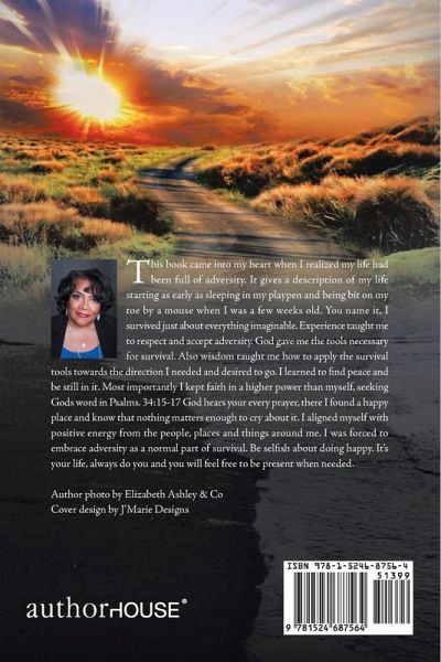 This book came into my heart when I realized my life had been full of adversity. It gives a detail description of my life starting as early as sleeping in my playpen and being bit on my toe when I was just a few weeks old. You name it, I survived just about everything imaginable. Experience taught me to respect and accept adversity. God gave me the tools necessary for survival. Also wisdom taught me how to apply the survival tools towards the direction I needed and desired to go. I learned to Find peace and be still in it. Most importantly I kept faith in a higher power than myself, seeking Gods word in Psalms 34:15-17 God hears your every prayer, there I found a happy place and know that nothing matters enough to cry about it. I aligned myself with positive energy from the people, places and things around me. I found "No Place To Cry" about who got murdered or what the diagnosis is going to be or how much I had in the bank. I was forced to embrace adversity as a normal part of survival. Be selfish about doing happy. It’s your life, always do you and you will feel free to be present when needed.