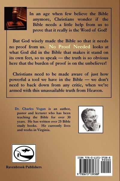 In an age when few believe the Bible anymore, Christians wonder if the Bible needs a little help from us to prove that it really is the Word of God! But God wisely made the Bible so that it needs no proof from us. No Proof Needed looks at what God did in the Bible that makes it stand on its own feet, so to speak - the truth is so obvious here that the burden of proof is actually on the unbeliever! Christians need to be made aware of just how powerful a tool we have in the Bible - we don't need to back down from any critic, when we're armed with this unassailable truth from Heaven. ... (Paperback, B&W interior)