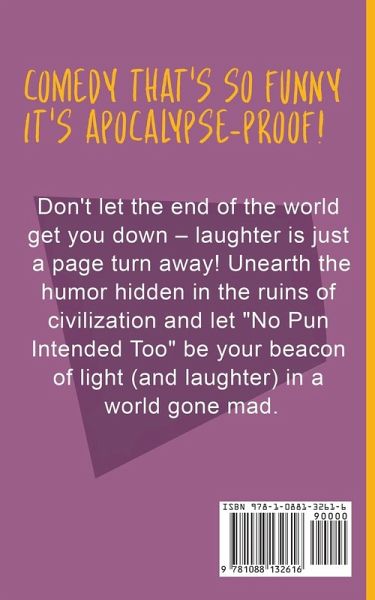 Introducing "No Pun Intended Voume Too," a hilarious parody joke book inspired by the hit TV show! Dive into a world of humor and wit that is guaranteed to bring a smile to your face. Don't let the end of the world get you down - laughter is just a page turn away! Unearth the humor hidden in the ruins of civilization and let "No Pun Intended Too" be your beacon of light (and laughter) in a world gone mad. Explore the lighter side of the post-apocalyptic world as you follow Ellie, Joel, and their friends on a journey filled with laughter, camaraderie, and groan-worthy moments. This parody joke book is the perfect gift for fans or anyone who loves a clever twist on pop culture. "No Pun Intended Volume Too" features:The 50 original jokes from the show PLUS Over 300+ new side-splitting jokes A mix of puns, one-liners, and witty observations that will entertain readers of all ages High-quality printing and a sleek, durable cover ensures your joke book survives the apocalypse (or at least a few hearty chuckles) The perfect gift for fans of the TV show or anyone who loves a laugh Remember, laughter is the best medicine, even in a world overrun by clickers and chaos. Grab your copy of "No Pun Intended Too," and let the fun-apocalypse begin!