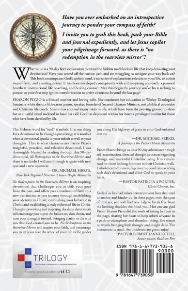 Have you ever embarked on an introspective journey to ponder your compass of faith? I invite you to grab this book, pack your Bible and journal expediently, and let Jesus copilot your pilgrimage forward. as there is "no redemption in the rearview mirror"! What value is a 90-day faith exploration to reveal the hidden roadblocks in life that keep detouring your destination? Have you veered off the narrow path and are struggling to navigate your way back on? This book encompasses God's spoken word, a narrative of explanations relevant to your life, an action step of faith, and a sealing prayer. It has been developed conceptually with a three-prong approach: a pastoral heartbeat, motivational life coaching, and healing counsel. May this begin the journey you've been seeking to pursue, as your first stop ignites transformation to arrive victorious beyond the last page!