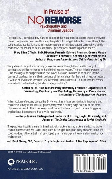 An in-depth interdisciplinary perspective on psychopathy suitable for those interested in criminology and criminal justice, sociology, psychology, anthropology, and other social science as well as general knowledge. An innovative and indispensable resource for those wishing to investigate how and why psychopathy is important in understanding criminal behavior and its response, No Remorse: Psychopathy and Criminal Justice provides a comprehensive examination of the empirical research and cultural understanding of psychopathy. The book examines ways in which the construct and concept of psychopathy have made their way into criminological theory and criminal justice practice. It offers a focused look at how the term "psychopath" is used and understood in law enforcement, the courts, corrections, victim services, and juvenile justice. Additionally, it examines historical, research, and cultural perspectives on psychopathy for understanding criminal behavior, exploring theories of and research into psychopaths, psychopathy and gender, and representations of psychopaths in film and literature.