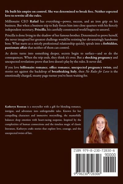 He built his empire on control. She was determined to break free. Neither expected love to rewrite all the rules. Millionaire CEO Rafael has everything-power, success, and an iron grip on his business. But when a business trip to Italy forces him into close quarters with his fiercely independent secretary, Priscilla, his carefully constructed world begins to unravel. Priscilla is done living in the shadow of her famous brother. Determined to prove herself, she never imagined her greatest challenge would be resisting her devastatingly handsome boss. What starts as a strictly professional relationship quickly spirals into a forbidden, passionate affair that neither of them can control. As desire turns into something deeper, secrets begin to surface-and so do the consequences. When the trip ends, they think it's over. But a shocking pregnancy and unexpected revelations prove that love doesn't play by the rules. It never did. If you love billionaire romance, office romance, unexpected pregnancy twists, and stories set against the backdrop of breathtaking Italy, then No Rules for Love is the emotionally charged, steamy page-turner you've been waiting for.