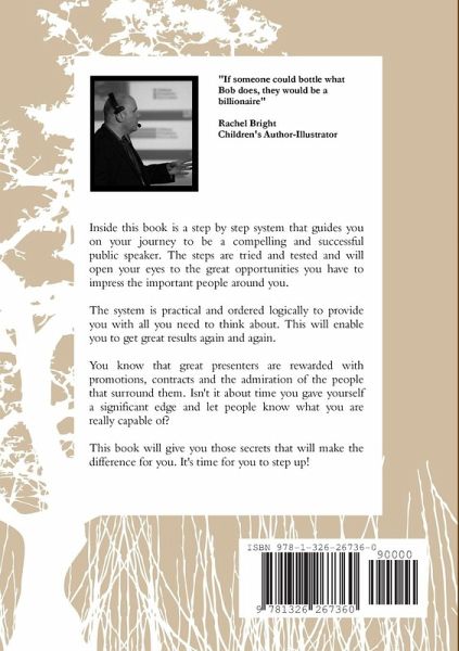 A speakers guide to delivering effective presentations. A step by step system that gives anyone the information they need to prepare for different types of presentations for different audiences. The book provides practical planning, preparation and consideration of delivering effective communication in a world that appears not to have a lot of time. This book is essential for anyone who cares about presentation and who wants to be able to benefit from being a really effective speaker. A must for anyone who wants the chance to get what they want. This book is for everyone who knows that in order to achieve their goals and desires, you need to be heard first!