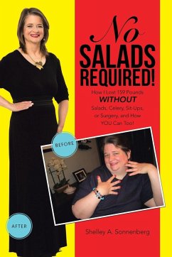 " Discover the weight-loss story that has brought hope and inspiration to people in twenty-eight countries! Enjoy Shelley A. Sonnenberg¿s heart-touching poetry and refreshing sense of humor as she relates both her personal story and her method for losing weight in a fresh, entertaining way! Enjoy a varied menu of delightful, satisfying foods without the need to weigh out portions or count calories. Use the convenient food lists and suggested meal combinations to easily plan your grocery shopping. Find out how to make sixteen flavors of sweet, delicious protein powder drinks as well as easy, flavorful recipes for BBQ ribs, meat loaf, fried chicken, prime rib, and other foods that are such a joy to eat that you will look forward to mealtime. Learn how to turn to God instead of food when you have problems and how to seek his help to meet your weight-loss goals. Find out how to choose the right exercise program for you! Learn how to start with the body you have and create the body you want! Discover how to eat and exercise like a skinny person until your body figures it out! No Salads Required! will help you lose weight fast and enjoy doing it! " " Discover the weight-loss story that has brought hope and inspiration to people in twenty-eight countries! Enjoy Shelley A. Sonnenberg¿s heart-touching poetry and refreshing sense of humor as she relates both her personal story and her method for losing weight in a fresh, entertaining way! Enjoy a varied menu of delightful, satisfying foods without the need to weigh out portions or count calories. Use the convenient food lists and suggested meal combinations to easily plan your grocery shopping. Find out how to make sixteen flavors of sweet, delicious protein powder drinks as well as easy, flavorful recipes for BBQ ribs, meat loaf, fried chicken, prime rib, and other foods that are such a joy to eat that you will look forward to mealtime. Learn how to turn to God instead of food when you have problems and how to seek his help to meet your weight-loss goals. Find out how to choose the right exercise program for you! Learn how to start with the body you have and create the body you want! Discover how to eat and exercise like a skinny person until your body figures it out! No Salads Required! will help you lose weight fast and enjoy doing it! "