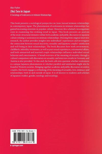 This book presents a sociological perspective on (non-)sexual intimate relationships in contemporary Japan. The phenomenon of sexlessness in intimate relationships has gained increasing attention in popular culture. However, few scholarly investigations exist in examining this striking trend in Japan. This book presents an analysis of the socio-structural elements within both academic and public discourses in Japanese culture relating to sexlessness in intimate relationships. Drawing from original interview research, the author provides insights into individuals' experiences and investigates the connection between sexual inactivity, sexuality and Japanese couples' satisfaction and well-being in their relationships. The book discusses how work environment, childbirth, infertility treatments, as well as past sexual experiences, extramarital affairs, and both unmarried and married couple relationships influence individual sexual behavior and consciousness. A broad overview of the meaning of sexuality through a cultural comparison with discourses on sexuality and interview results in Germany and Austria is also provided. To this end, the book calls into question whether sexlessness is a unique Japanese phenomenon or whether parallels and similarities might also be found in Western societies. Bringing together academic and public discourses on sexless couples, this book engages a rethinking of the meaning of sexuality, love, intimacy and relationships, both in and outside of Japan. It is of interest to students and scholars of Japanese studies, gender, sexology and sociology.