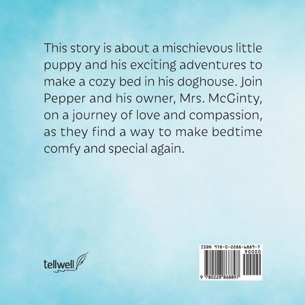 This story is about a mischievous little puppy and his exciting adventures to make a cozy bed in his doghouse. Join Pepper and his owner, Mrs. McGinty, on a journey of love and compassion, as they find a way to make bedtime comfy and special again.
