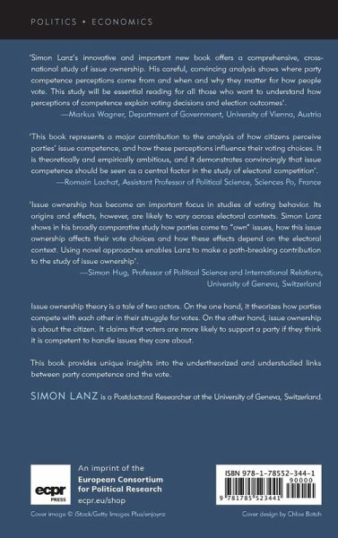 Issue ownership theory is a tale of two actors. On the one hand, it theorizes how parties compete with each other in their struggle for votes. On the other hand, issue ownership is about the citizen. It claims that voters are more likely to support a party if they think it is competent to handle issues they care about. This book provides unique insights into the undertheorized and understudied links between party competence and the vote. It argues that issue ownership voting (or competence-based voting) consists of three assumptions: First, voters are primarily interested in having issues handled by a competent party. Unlike in other issue voting models this implies that voters are reluctant (or unable) to deal with the specificities of the exact solution to a political problem. Though positional considerations feed into evaluations of party competence, other factors are important, too. This is reflected by the second assumption, following which issue handling competence is a subjective preference with various sources. Third, competence is more decisive in the decision-making process if the voter cares deeply about the issue. These three assumptions yield the key formula of issue ownership voting: Voters support the most competent party on the most important issue.