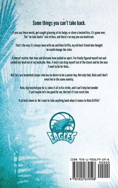 Some things you can't take back. If you say those words, get caught glancing at his bulge, or share a heated kiss, it's game over. The "no take backs" rule strikes, and there's no way you can backtrack. That's the way it's always been with me and Nate Griffin, my old best friend who thought he could change the rules. It doesn't matter that time and distance have pulled us apart. I've finally figured myself out and yanked my head out of my backside. Now, if only I can drag myself out of the closet and be the man I want to be for Nate... But I'm a pro basketball player who has no desire to be a poster boy. Not only that, Nate and I don't even live in the same country. Nate, big-hearted guy he is, takes it all in his stride, and I can't help but wonder if just maybe he's too good for me. But hell if I can resist him. It all boils down to: Do I want to take anything back when it comes to Nate Griffin?