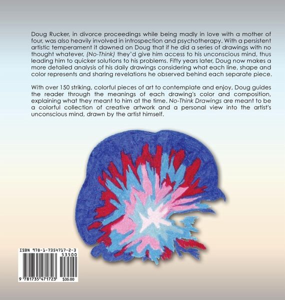 Doug Rucker, in divorce proceedings while being madly in love with a mother of four, was also heavily involved in introspection and psychotherapy. With a persistent artistic temperament it dawned on Doug that if he did a series of drawings with no thought whatever, (No-Think) they'd give him access to his unconscious mind, thus leading him to quicker solutions to his problems. Fifty years later, Doug now makes a more detailed analysis of his daily drawings considering what each line, shape and color represents and sharing revelations he observed behind each separate piece. With over 150…mehr