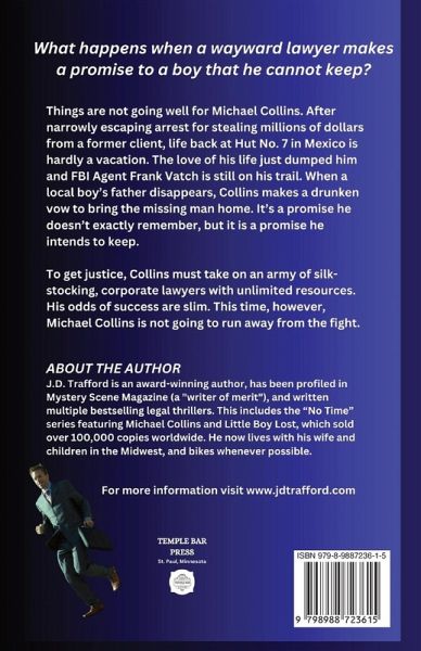 What happens when a wayward lawyer makes a promise to a boy that he cannot keep? Things are not going well for Michael Collins. After narrowly escaping arrest for stealing millions of dollars from a former client, life back at Hut No. 7 in Mexico is hardly a vacation. The love of his life just dumped him and FBI Agent Frank Vatch is still on his trail. When a local boy's father disappears, Collins makes a drunken vow to bring the missing man home. It's a promise he doesn't exactly remember, but it is a promise he intends to keep. Collins and his pot-smoking, mathematician friend, Kermit Guillardo, fly to a small town in rural Florida where Tommy Estrada had worked the fields with other immigrants without proper authorization. The locals are not friendly to outsiders, and the cops are even more hostile. They make no effort to hide their desire to get rid of Collins and anybody else who dares to poke around the large agricultural companies who own the politicians and run the county. He teams up with a beautiful and feisty attorney who was already organizing the laborers to protect their rights. They eventually get answers, and Collins decides to seek accountability the only way he knows how: in court. With a novel legal theory and facing an army of silk-stocking lawyers with unlimited resources, his odds of success are slim. This time, however, Michael Collins is not going to run away from the fight. This is the second book in the "No Time" series, and it doesn't disappoint. Get you copy today!