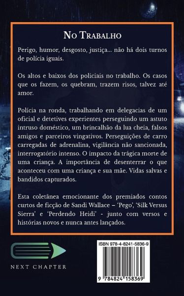 Perigo, humor, desgosto, justiça... não há dois turnos de polícia iguais. Os altos e baixos dos policiais no trabalho. Os casos que os fazem, os quebram, trazem risos, talvez até amor. Polícia na ronda, trabalhando em delegacias de um oficial e detetives experientes perseguindo um astuto intruso doméstico, um brincalhão da lua cheia, falsos amigos e parceiros vingativos. Perseguições de carro carregadas de adrenalina, vigilância não sancionada, interrogatório intenso. O impacto da trágica morte de uma criança. A importância de desenterrar o que aconteceu com uma criança e sua mãe. Vidas salvas e bandidos capturados. Esta coletânea emocionante dos premiados contos curtos de ficção de Sandi Wallace - 'Pego', 'Silk Versus Sierra' e 'Perdendo Heidi' - junto com versos e histórias novos e nunca antes lançados.