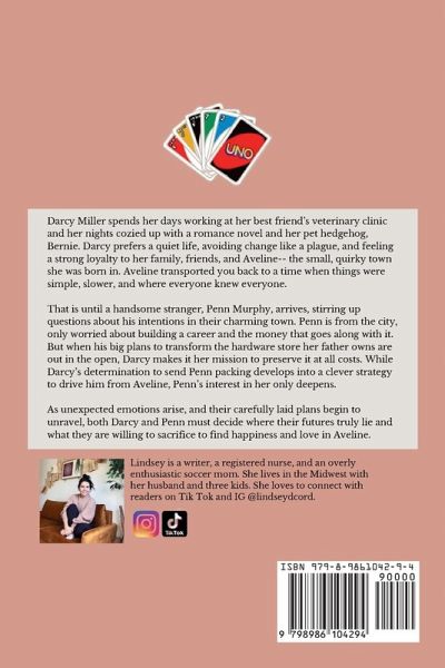 A GILMORE GIRLS MEETS HOW TO LOSE A GUY IN TEN DAYS BATTLE ROYALE! Darcy Miller spends her days working at her best friend's veterinary clinic and her nights cozied up with a romance novel and her pet hedgehog, Bernie. Darcy prefers a quiet life, avoiding change like a plague, and feeling a strong loyalty to her family, friends, and Aveline-- the small, quirky town she was born in. Aveline transported you back to a time when things were simple, slower, and where everyone knew everyone. That is until a handsome stranger, Penn Murphy, arrives, stirring up questions about his intentions in their charming town. Penn is from the city, only worried about building a career and the money that goes along with it. But when his big plans to transform the hardware store her father owns are out in the open, Darcy makes it her mission to preserve it at all costs. While Darcy's determination to send Penn packing develops into a clever strategy to drive him from Aveline, Penn's interest in her only deepens. As unexpected emotions arise, and their carefully laid plans begin to unravel, both Darcy and Penn must decide where their futures truly lie and what they are willing to sacrifice to find happiness and love in Aveline.