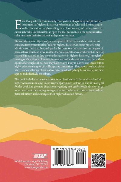 Even though diversity is currently conveyed as a ubiquitous principle within institutions of higher education, professionals of color still face issues such as discrimination, the glass ceiling, lack of mentoring, and limited access to career networks. Unfortunately, an open channel does not exist for professionals of color to express their frustrations and genuine concerns. The narratives in No Ways Tired present a powerful voice about the experiences of student affairs professionals of color in higher education, including intersecting identities such as race, class, and gender. Furthermore, the narratives are nuggets of personal truth that can serve as a lens for professionals of color who wish to develop strategies to succeed as they traverse their careers in higher education. Through the sharing of their visions of success, lessons learned, and cautionary tales, the authors openly offer insights about how they have created a way to survive and thrive within higher education in spite of challenges and distractions. They also articulate a vision where student affairs professionals of color can develop fully, be authentic, use their agency, and effectively contribute. This book includes recommendations for professionals of color at all levels within higher education and ways to construct opportunities to flourish. The ultimate goal for this book is to promote discussions regarding how professionals of color can be more proactive in developing strategies that are conducive to their professional and personal success as they navigate their higher education careers.