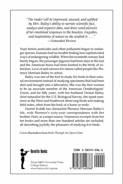 Years before pesticides and other pollutants began to endanger species, humans had no trouble finding less sophisticated ways of endangering wildlife. When the twentieth century had barely begun, the passenger pigeons had been slain to the last and the American bison had been hunted to the brink of extinction. Love of and concern for nature called people like Florence Merriam Bailey to action. Bailey was one of the first to study live birds in their natural environment instead of studying specimens that had been shot and brought into a laboratory. She was the first woman to be an associate member of the American Ornithologists' Union, and for fifty years, with her husband Vernon Bailey, chief naturalist for the U.S. Biological Survey, she spent summers in the West and Southwest observing birds and making field notes, often from the back of a horse or mule. Harriet Kofalk has chronicled Florence Merriam Bailey's life, with Florence's sixtyyear correspondence with her brother, Hart, as a major source. Numerous excerpts from her ten books and more than one hundred articles are included, all describing joyfully the pleasures of studying live birds.