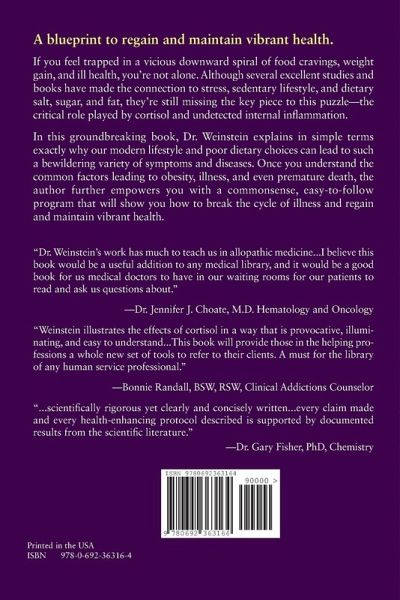 If you feel trapped in a vicious downward spiral of food cravings, obesity, and ill health, you're not alone. Although several excellent studies and books have made the connection to stress, sedentary lifestyle, and dietary salt, sugar, and fat, they're still missing the critical pieces to unlocking the puzzle of what is really making you sick-and without an understanding of those missing pieces, and especially the critical roles of the stress hormone cortisol and internal inflammation-your chances of regaining full health and vitality are not good. In this groundbreaking book, Dr. Weinstein explains in simple terms exactly what goes wrong in our bodies and precisely why our modern lifestyle and poor dietary choices can lead to such a bewildering variety of symptoms and diseases. Once you understand the common factors leading to obesity, illness, and even premature death, the author further empowers you with a commonsense, easy-to-follow program that will show you how to break the cycle of illness and regain and maintain vibrant health. Praise for this book: "I believe Dr. Weinstein's work has much to teach us in allopathic medicine. I regret that I was not taught more about diet and the issue of inflammation in medical school ... I believe this book would be a useful addition to any medical library, and it would be a good book for us medical doctors to have in our waiting rooms for our patients to read and ask us questions about." -Jennifer J. Choate, M.D. Hematology and Oncology "Weinstein illustrates the effects of cortisol in a way that is provocative, illuminating, and easy to understand...This book will provide those in the helping professions a whole new set of tools to refer to their clients. A must for the library of any human service professional." -Bonnie Randall, BSW, RSW, Clinical Addictions Counselor "'No Wonder You Feel Like Crap!' is a scientifically rigorous yet clearly and concisely written explanation of exactly what its title states and how to change that condition. Rather than being yet another gloom and doom presentation of the inevitability of the title experience, Dr. Weinstein provides a simple and easy to follow protocol to reclaim the health and vitality that every person should experience on a daily basis. Unlike many poorly researched and grossly exaggerated "get healthy quick" schemes, every claim made and every health-enhancing protocol described is supported by documented results from the scientific literature in addition to over 30 years of Dr. Weinstein's own on-going research and clinical results: there are more scientific references cited than there are pages in this book." - Dr. Gary Fisher, PhD