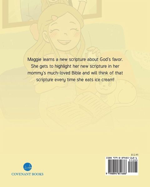 Maggie learns a new scripture about God's favor. She gets to highlight her new scripture in her mommy's much-loved Bible and will think of that scripture every time she eats ice cream!