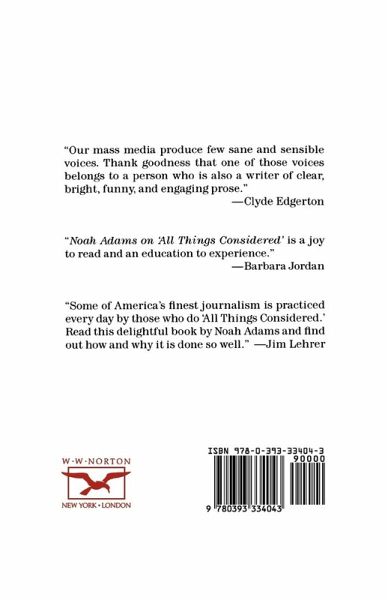 Over its twenty-year history National Public Radio's "All Things Considered" has become a landmark American program, a unique source of news and of voices from across the country that don't often get a hearing elsewhere. In these pages, Noah Adams captures a year in the life of "All Things Considered", and celebrates the special pleasures of the show: its original blend of frontline news reporting, commentary, and features; its spirited attention to the highways and the byways of American life; and the people - "All Things Considered" staff and listeners alike - who make it all happen. The year's stories take us from China to Romania and from Alaska to Appalachia, from the fall of Communism in Eastern Europe to a West Virginia fire department's ramp supper fundraiser. Along the way we look in on musicians, writers, farmers, and bungee jumpers; we go whale watching and lighthouse hunting; and we ride the rails from St. Paul to Seattle on the "Empire Builder" train. We see how the broadcast is put together by a team of reporters, technicians, and announcers determined to bring us the news straight from the source, without distortions and simplifications. We learn how "All Things Considered" and National Public Radio got their starts, and how Noah Adams came to join them both. And we hear a lifetime's worth of stories of radio work gone (sometimes) just right and (occasionally) hilariously wrong. Most of all we meet people on both sides of the radio who we're glad to know, listeners from all across the country and the "All Things Considered" reporters - Cokie Roberts, Nina Totenberg, John Hockenberry, Deborah Amos, Susan Stamberg, and others - who have become as familiar to us, and astrusted, as neighbors across the back fence. As engaging and varied as the program it chronicles, here is a must-read for every fan of what Time calls "the most literate, trenchant, and entertaining news program on the radio".
