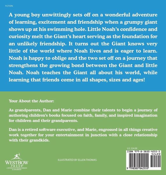 A young boy unwittingly sets off on a wonderful adventure of learning, excitement and friendship when a grumpy giant shows up at his swimming hole. Little Noah's confidence and curiosity melt the Giant's heart serving as the foundation for an unlikely friendship. It turns out the Giant knows very little of the world where Noah lives and is eager to learn. Noah is happy to oblige and the two set off on a journey that strengthens the growing bond between the Giant and little Noah. Noah teaches the Giant all about his world, while learning that friends come in all shapes, sizes and ages!