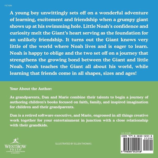 A young boy unwittingly sets off on a wonderful adventure of learning, excitement and friendship when a grumpy giant shows up at his swimming hole. Little Noah's confidence and curiosity melt the Giant's heart serving as the foundation for an unlikely friendship. It turns out the Giant knows very little of the world where Noah lives and is eager to learn. Noah is happy to oblige and the two set off on a journey that strengthens the growing bond between the Giant and little Noah. Noah teaches the Giant all about his world, while learning that friends come in all shapes, sizes and ages!