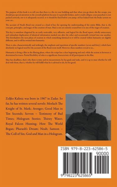 Zeljko Kalinic was born in 1967 in Zadar. So far, he has written several novels: Morlach The Knight of St. Mark; Avenger; Good Man in Ten Seconds; Servon - Testimony of Bad Times; Hologram Stories; Thirsty Water; Royal Falcon Hunting; How The World Began; Pharaoh's Dream; Noah; Samson – The Coll of Sin; God and Man in a Hologram. Through all the books was dragged a little supernatural but connected them also, a fine thread that, regardless of the subject, action, historical moment, or characters, identifies and separates good from evil to encourage men to begin their 'correction,' the separation of good from sin, truth from falsehood, identification and separation of right from wrong ... Books are full of colorful characters embedded in turbulent historical moments and interesting and exciting events, which are forced to move constantly and actions full of uncertainty. Make-believe or real mysteries, which the actors occasionally wrapped, impose their questions about the reality in which we live. The characters' psychological profiles, actions, reactions, and general behavior reveal the human weakness that should work. Each of these books from the reader requires a journey through the book's interior, through the events described in the interior. What was expected to be found there let her remain a personal secret. The intention is that each person starts internal wind, at least one good 'Buru,’ and to dispel the dirty fog that hung over from a good depopulated valley of our mind.