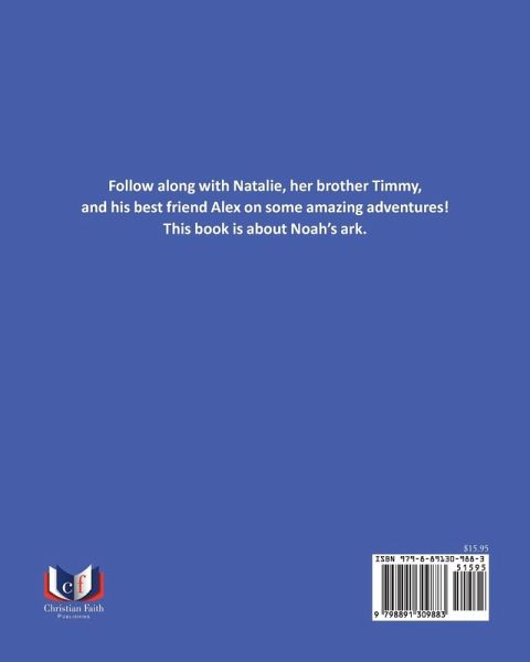 Follow along with Natalie, her brother Timmy, and his best friend Alex on some amazing adventures! This book is about Noah's ark.