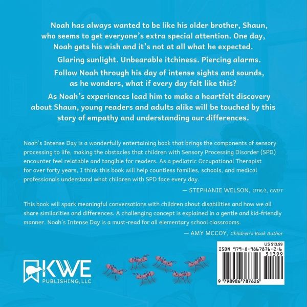 Noah has always wanted to be like his older brother, Shaun, who seems to get everyone's extra special attention. One day, Noah gets his wish and it's not at all what he expected. Glaring sunlight. Unbearable itchiness. Piercing alarms. Follow Noah through his day of intense sights and sounds, as he wonders, what if every day felt like this? As Noah's experiences lead him to make a heartfelt discovery about Shaun, young readers and adults alike will be touched by this story of empathy and understanding our differences.