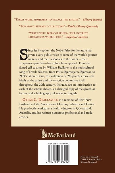Since its inception, the Nobel Prize for literature has given a very public voice to some of the world's greatest writers, and their responses to the honor--their acceptance speeches--have often been epochal. From the famed call to arms by William Faulkner to the multicultural song of Derek Walcott, from 1903's Bjornstjerne Bjornson to 1999's Gunter Grass, this collection of 28 speeches traces the ideals of the artists and the selection committee itself throughout the 20th century. Included are an introduction to each of the writers chosen, an abridged copy of the speech or lecture and a bibliography of works in English.