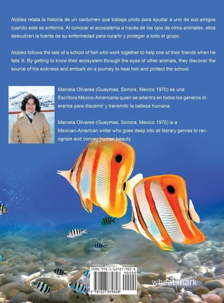 Nobles relata la historia de un cardumen que trabaja unido para ayudar a uno de sus amigos cuando este se enferma. Al conocer el ecosistema a través de los ojos de otros animales, ellos descubren la fuente de su enfermedad para curarlo y proteger a todo el grupo. La historia que está escrita en Español e Inglés, Nobles enseña el valor de cuidar de otros y su ambiente natural de manera bilingüe. Nobles follows the tale of a school of fish who work together to help one of their friends when he falls ill. By getting to know their ecosystem through the eyes of other animals, they discover the source of his sickness and embark on a journey to heal him and protect the school. A beautiful story that is written in Spanish and English, Nobles teaches children the value of caring for one another and for their environment in a bilingual setting.