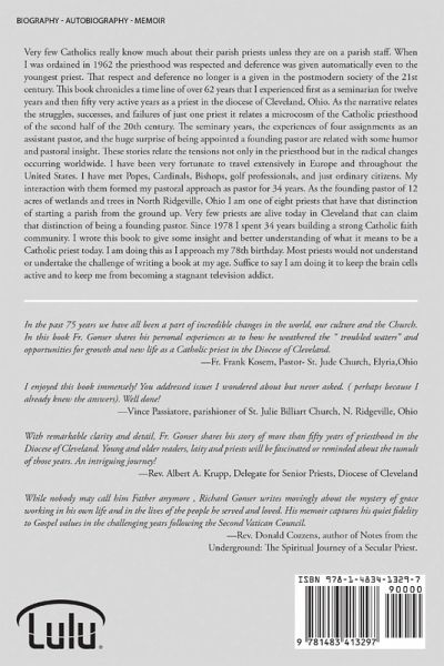 A retired Catholic priest relates his experience of the changing face of the priesthood from seminary to retirement. What he writes about those turbulent and challenging years from 1950 to 2010 reveals the personal and, at times, the very difficult journey of a parish priest. With remarkable clarity and detail, Fr. Gonser shares his story of more than fifty years of priesthood in the Diocese of Cleveland. Young and older readers, laity and priests will be fascinated or reminded about the tumult of those years. An intriguing journey! Rev. Albert A. Krupp, Delegate for Senior Priests, Diocese of Cleveland While nobody may call him Father anymore , Richard Gonser writes movingly about the mystery of grace working in his own life and in the lives of the people he served and loved. His memoir captures his quiet fidelity to Gospel values in the challenging year following the Second Vatican Council. Rev. Donald Cozzens, author of Notes from the Underground: The Spiritual Journey of a Secular Priest.