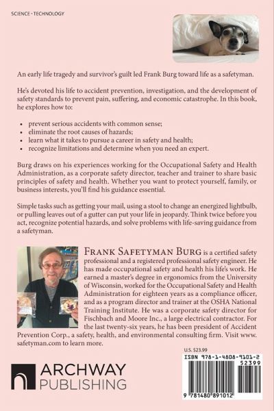 An early life tragedy and survivor's guilt led Frank Burg toward life as a safetyman. He's devoted his life to accident prevention, investigation, and the development of safety standards to prevent pain, suffering, and economic catastrophe. In this book, he explores how to: ¿ prevent serious accidents with common sense; ¿ eliminate the root causes of hazards; ¿ learn what it takes to pursue a career in safety and health; ¿ recognize limitations and determine when you need an expert. Burg draws on his experiences working for the Occupational Safety and Health Administration, as a corporate safety director, teacher and trainer to share basic principles of safety and health. Whether you want to protect yourself, family, or business interests, you'll find his guidance essential. Simple tasks such as getting your mail, using a stool to change an energized lightbulb, or pulling leaves out of a gutter can put your life in jeopardy. Think twice before you act, recognize potential hazards, and solve problems with life-saving guidance from a safetyman.