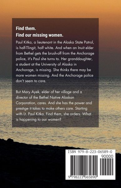 Find them. Find the missing women. Paul Kitka, a lieutenant in the Alaska State Patrol, is half-Tlingit, half white. And when an Inuit elder from Bethel gets the brush-off from the Anchorage police, it's Paul she turns to. Her granddaughter, a student at the University of Alaska in Anchorage, is missing. She thinks there may be more women missing. And the Anchorage police don't seem to care. But Mary Ayek, elder of her village and a director of the Bethel Native Alaskan Corporation, cares. And she has the power and prestige it takes to make others care. Starting with Lt. Paul Kitka. Find them, she orders. What is happening to our women? Third in a series of mysteries featuring Paul Kitka and Dace Marshall in Talkeetna, Alaska.