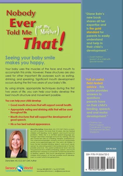 Fills a missing niche in the child rearing world. It explains everything from the basics of nursing, to SIDS, to facial massage; finishing with the secrets to good speech development and your child's best natural appearance.
