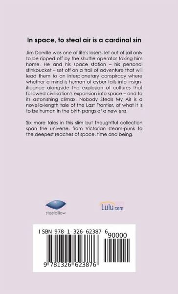 Pocketbook edition. In space, to steal air is the cardinal sin. Jim Dorville was one of life's losers, let out of jail only to be ripped off by the shuttle operator taking him home. He and his space station - his personal stinkbucket - set off on a trail of adventure that will lead them to an interplanetary conspiracy where whether a mind is human of cyber falls into insignificance alongside the explosion of cultures that followed civilisation's expansion into space - and to its astonishing climax. Nobody Steals My Air is a novella-length tale of the Last Frontier, of what it is to be human in the birth pangs of a new era. Six more tales in this slim but thoughtful collection span the universe, from Victorian steam-punk to the deepest reaches of space, time and being.