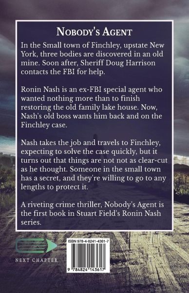 In the Small town of Finchley, upstate New York, three bodies are discovered in an old mine. Soon after, Sheriff Doug Harrison contacts the FBI for help. Ronin Nash is an ex-FBI special agent who wanted nothing more than to finish restoring the old family lake house. Now, Nash's old boss wants him back and on the Finchley case. Nash takes the job and travels to Finchley, expecting to solve the case quickly, but it turns out that things are not not as clear-cut as he thought. Someone in the small town has a secret, and they're willing to go to any lengths to protect it. A riveting crime thriller, Nobody's Agent is the first book in Stuart Field's Ronin Nash series.
