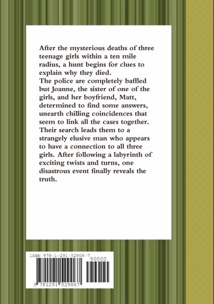 After the mysterious deaths of three teenage girls within a ten mile radius, a hunt begins for clues to explain why they died. The police are completely baffled but Joanne, the sister of one of the girls, and her boyfriend, Matt, determined to find some answers, unearth chilling coincidences that seem to link all the cases together. Their search leads them to a strangely elusive man who appears to have a connection to all three girls. After following a labyrinth of exciting twists and turns, one disastrous event finally reveals the truth.