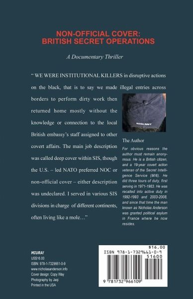 "WE WERE INSTITUTIONAL KILLERS in disruptive actions on the black, that is to say we made illegal entries across borders to perform dirty work, then returned home mostly without the knowledge or connection to the local British embassy's staff assigned to other covert affairs. The main job description was called deep cover within SIS, though the U.S.-led NATO preferred NOC or non-official cover - either description was undeclared. I served in various divisions in charge of different continents, often living like a mole…" The first installment of The NOC Trilogy by Nicholas Anderson.