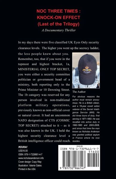 In my days there were five classified UK Eyes Only security clearance levels. The higher you went up the secrecy ladder, the less people knew about you... I held the highest security clearance level a British intelligence officer could reach. This book is about my last five years in the field being in charge of the 'uncammo' (not in uniform) unit of the special forces, 2003-2007, which encompassed the Iraqi War (three tours) and being in the field in Afghanistan (twice), Somalia and The Yemen, among others. The third installment of The NOC Trilogy by Nicholas Anderson.