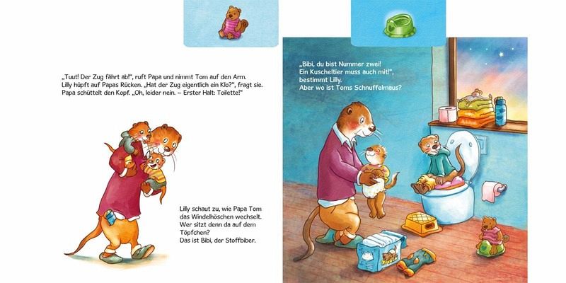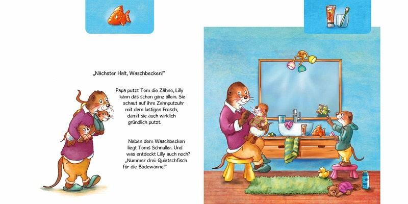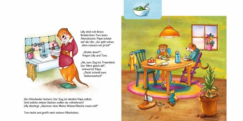 Bald ist Schlafenszeit und das fühlt sich für die beiden Otterkinder wie ein kleines Abenteuer an. Denn Papa spielt den Gutenachtzug ins Traumland. Tuut! Tuut!