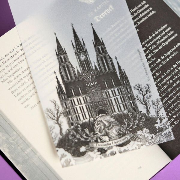 Was mich auch sehr begeistert hat, war das gesamte Setting. Keri Lake hat es geschafft, die Dracadia-Universität zum Leben zu erwecken durch ihre großartigen Beschreibungen: düster, alt, unheimlich, gleichzeitig voll mit wissenschaftlicher Neugier und verborgenen Experimenten. Dazu die Parasitenforschung, die Laboratmosphäre, die Motten-Symbolik… Alles war perfekt aufeinander gestimmt und ich wollte gerne noch so viel mehr, über das wissenschaftliche und die Experimente erfahren. (Versteht mich hierbei bitte nicht falsch, das ganze Thema ist nicht zu kurz gekommen, aber ich wollte gern noch so viel mehr erfahren!)