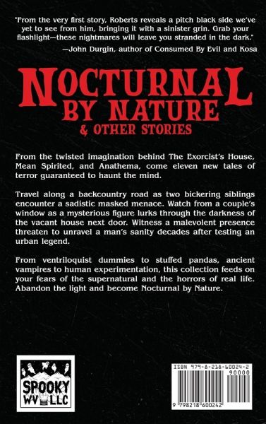 From the twisted imagination behind The Exorcist's House, Mean Spirited, and Anathema, come eleven new tales of terror guaranteed to haunt the mind. Travel along a backcountry road as two bickering siblings encounter a sadistic masked menace. Watch from a couple's window as a mysterious figure lurks through the darkness of the vacant house next door. Witness a malevolent presence threaten to unravel a man's sanity decades after testing an urban legend. From ventriloquist dummies to stuffed pandas, ancient vampires to human experimentation, this collection feeds on your fears of the supernatural and the horrors of real life. Abandon the light and become Nocturnal by Nature.