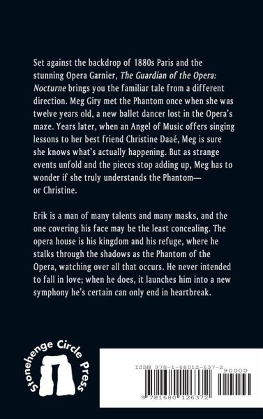 The Guardian of the Opera, Book One Set against the backdrop of 1880s Paris and the stunning Opera Garnier, The Guardian of the Opera: Nocturne brings you the familiar tale from a different direction. Meg Giry met the Phantom once when she was twelve years old, a new ballet dancer lost in the Opera's maze. Years later, when an Angel of Music offers singing lessons to her best friend Christine Daaé, Meg is sure she knows what's actually happening. But as strange events unfold and the pieces stop adding up, Meg has to wonder if she truly understands the Phantom-or Christine. Erik is a man of many talents and many masks, and the one covering his face may be the least concealing. The opera house is his kingdom and his refuge, where he stalks through the shadows as the Phantom of the Opera, watching over all that occurs. He never intended to fall in love; when he does, it launches him into a new symphony he's certain can only end in heartbreak.