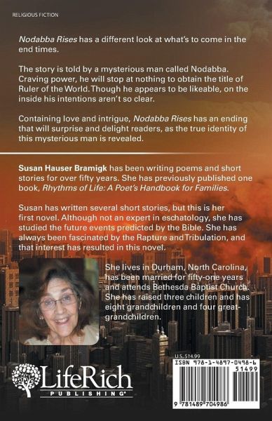 Nodabba Rises has a different look at what's to come in the end times. The story is told by a mysterious man called Nodabba. Craving power, he will stop at nothing to obtain the title of Ruler of the World. Though he appears to be likeable, on the inside his intentions aren't so clear. Containing love and intrigue, Nodabba Rises has an ending that will surprise and delight readers, as the true identity of this mysterious man is revealed.