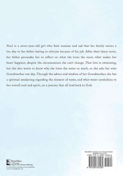 Noel is a seven-year-old girl who feels anxious and sad that her family moves a lot, due to her father having to relocate because of his job. After their latest move, her father persuades her to reflect on what she loves the most, what makes her heart happiest, despite the circumstances she can't change. That love is swimming, but she also wants to know why she loves the water so much, so she asks her wise Grandmother one day. Through the advice and wisdom of her Grandmother, she has a spiritual awakening regarding the element of water, and what water symbolizes to her overall soul and spirit. Noel begins her spiritual journey by sitting quietly wherever she finds herself; in the park, at school, at church, and of course in the water. She can truly meditate and therefore start to hear God's whispers, always leading her back to Him. Thus, she is able to better appreciate and handle her mixed emotions and feelings about all of the moving she's had to endure at such a young age.